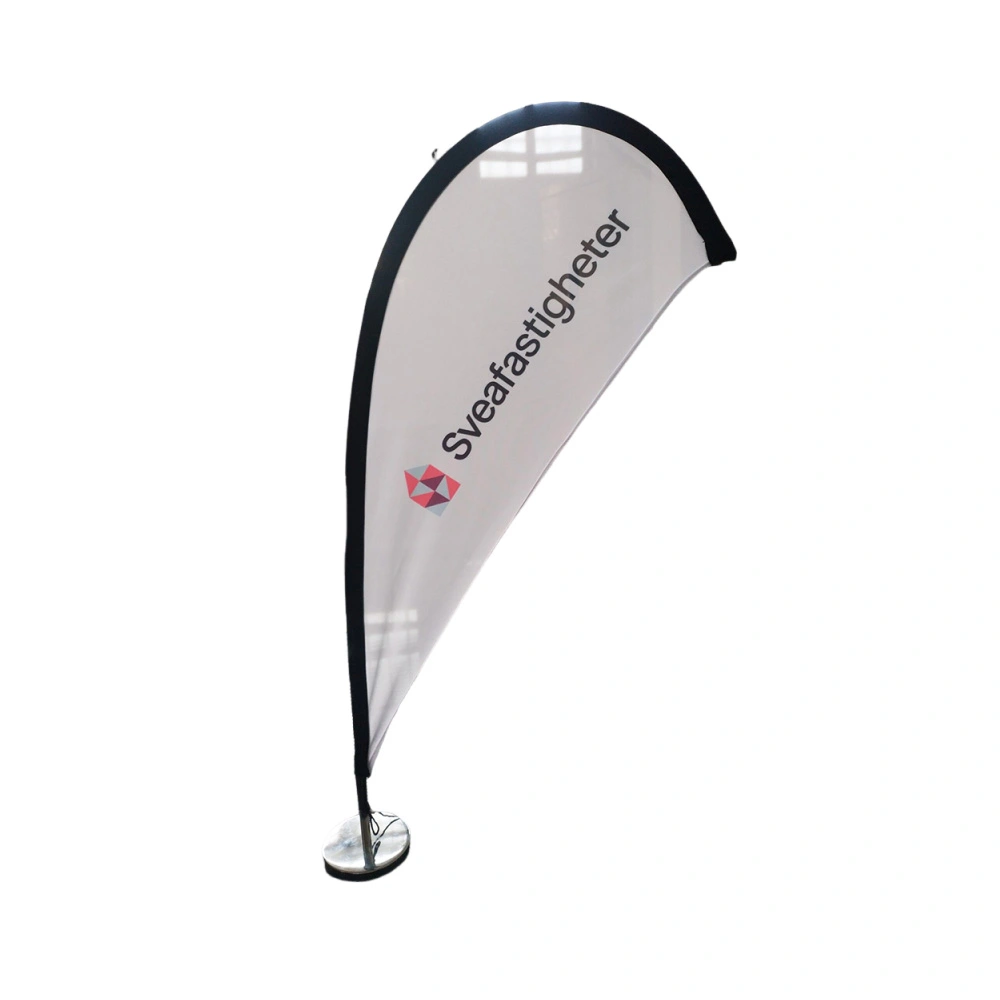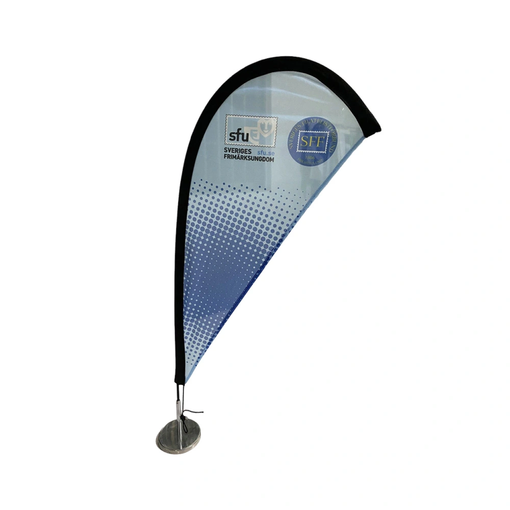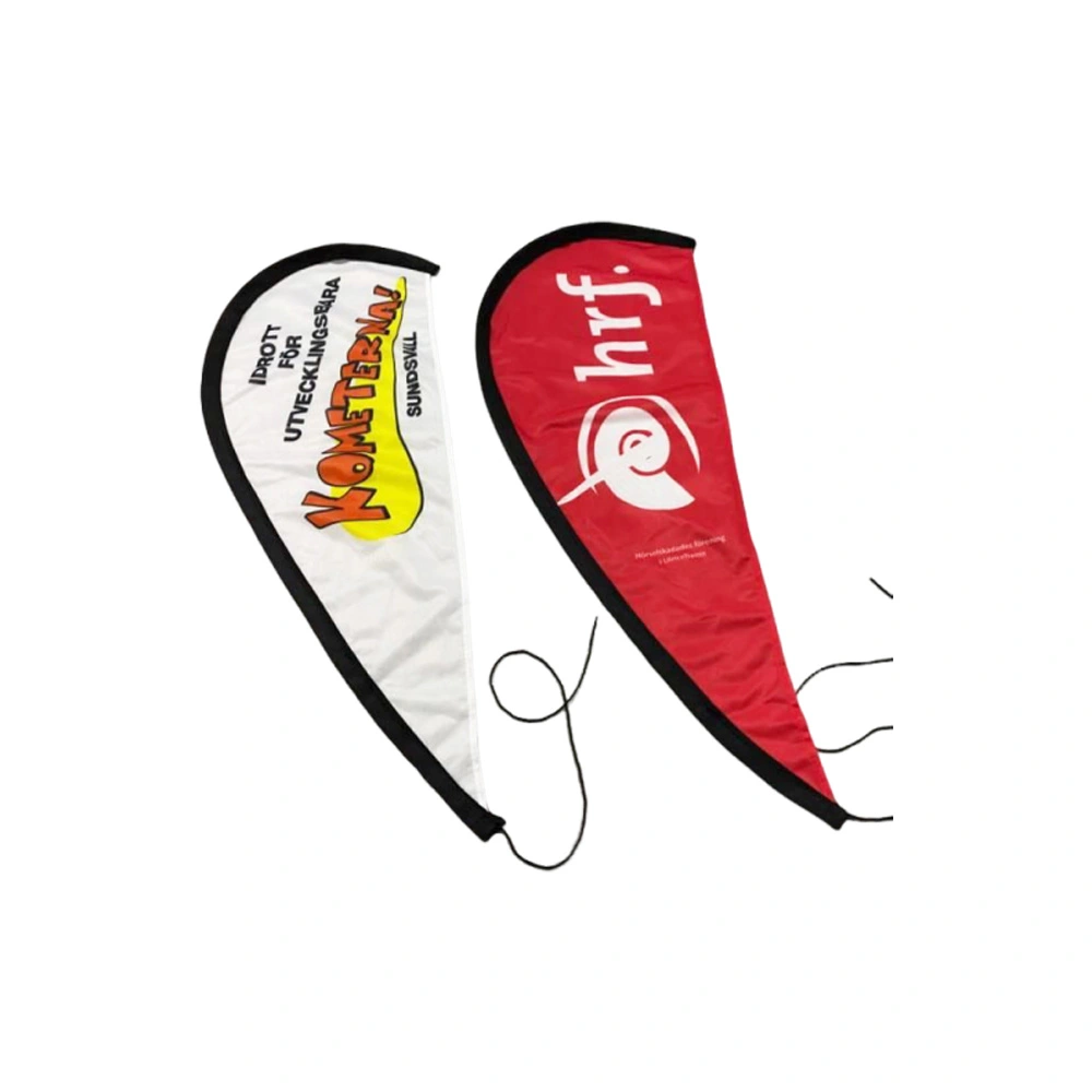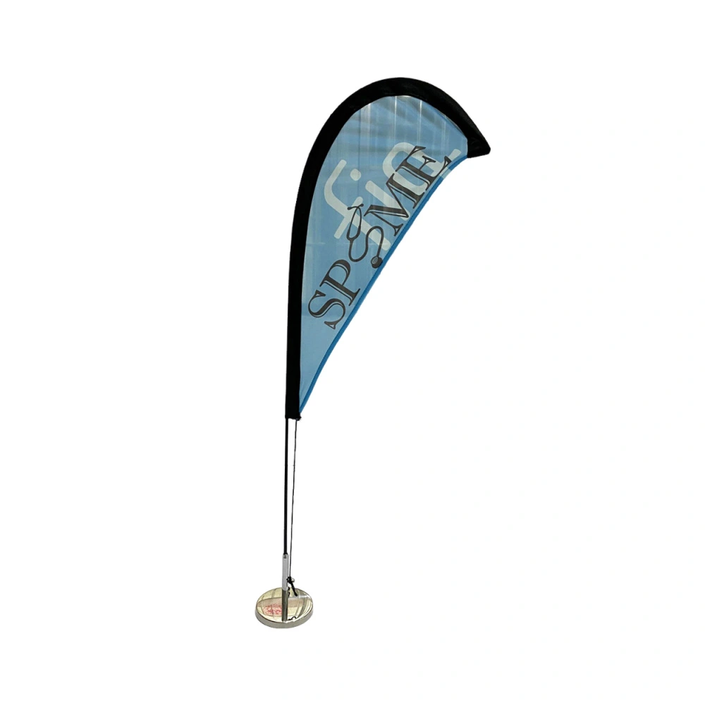 (1)The table teardrop beach flag features a smooth tear-drop design. When used for outdoor travel, it stands out particularly prominently.